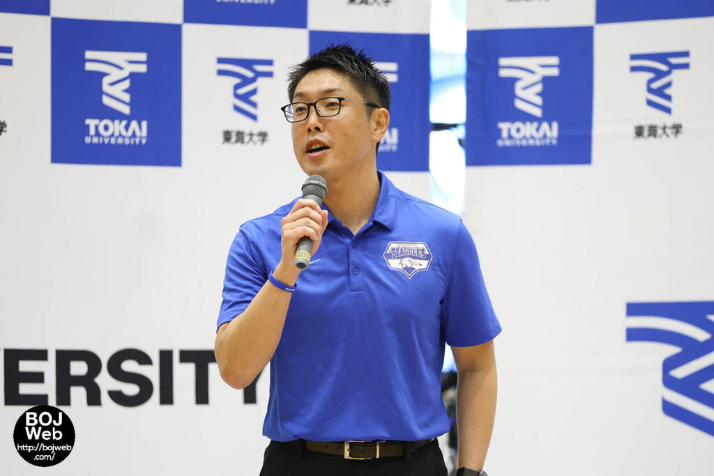 東海大・入野貴幸監督「みなさんの声援のおかげで気持ちよくやらせていただきました。非常にいい練習ができていて、日本大学さんは昨年のインカレ決勝で負けた相手でしたので、非常にいい入りができました。明日は昨年のホームゲームで負けた筑波大学が相手、皆さんのさらなる声援をお願いします」