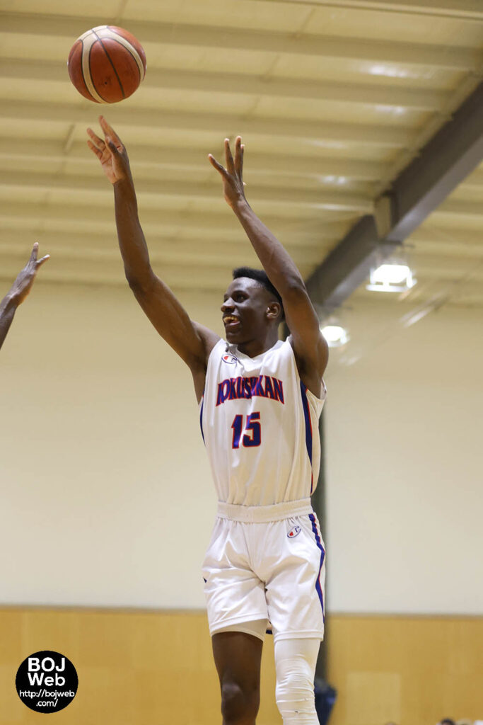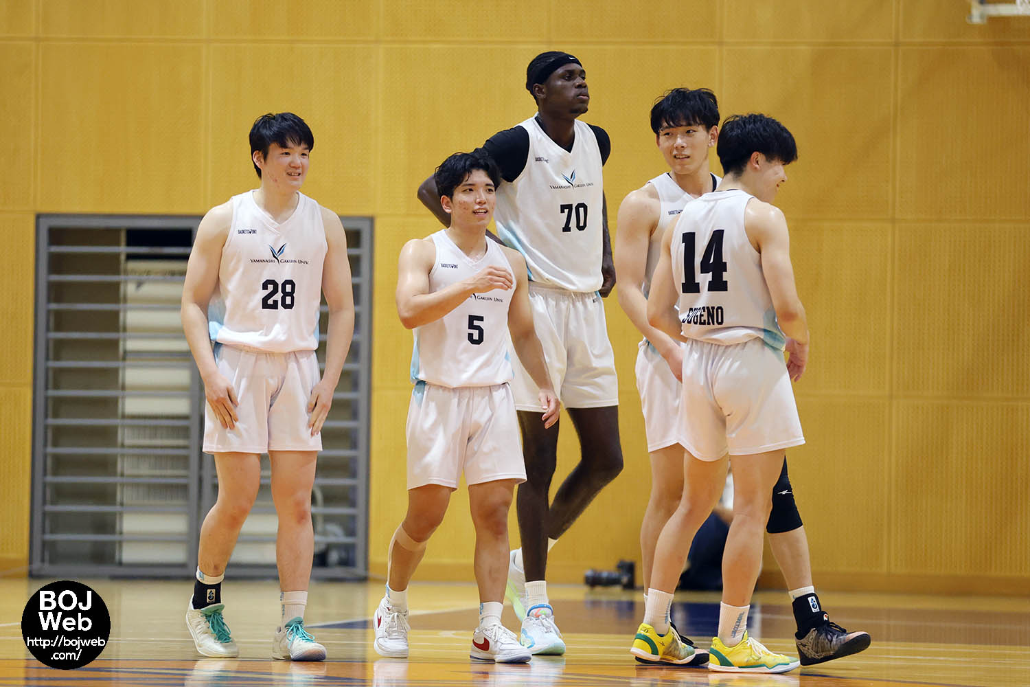 後半3Q、再び山梨学院大に流れが傾く。このQ江戸川大は10点に終わってしまい55-41と15点近い差がついてしまう。4Q、点差がさらに開きかかるが江戸川大が守りを固めて反撃にかかり、Qの半ばで#5梶谷(3年・G)のスリーポイントで10点差に詰め寄った。山梨学院大は守られて得点チャンスがなく、攻守の要である#98スヴェトリシックが残り4分半でファウルアウト。しかしこれで得たフリースローを江戸川大#1アデツツ(3年・F)は2本落としてしまう。山梨学院大はここで#9齋藤、#5中村が連続でスリーポイントを沈め、再び引き離す。#70カマレムレマ(4年・C)のブロックも飛び出し最後は64-72。頭から追いつかせることなく試合を展開して勝利した。