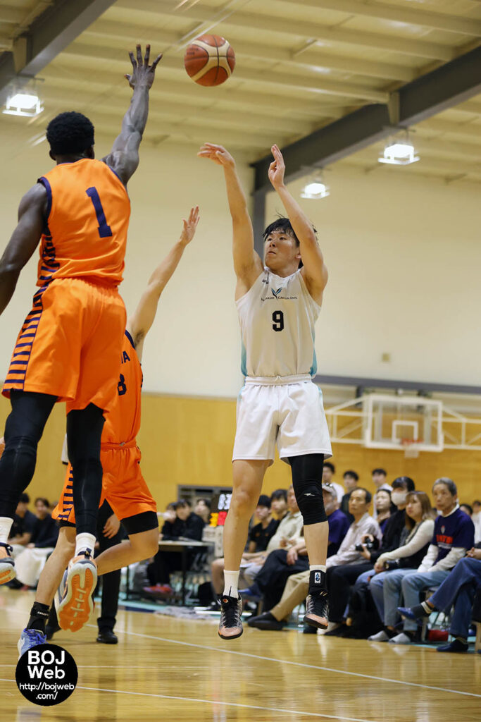 山梨学院大は立ち上がりからオフェンスでボールがよく回り、シュート確率が良かった。#5中村21点、#9齋藤16点、#14菅野18点と得点源が仕事を果たし、#98イゴールと#70カマレムレマがインサイドで負担を分け合うなどチームで機能した。
