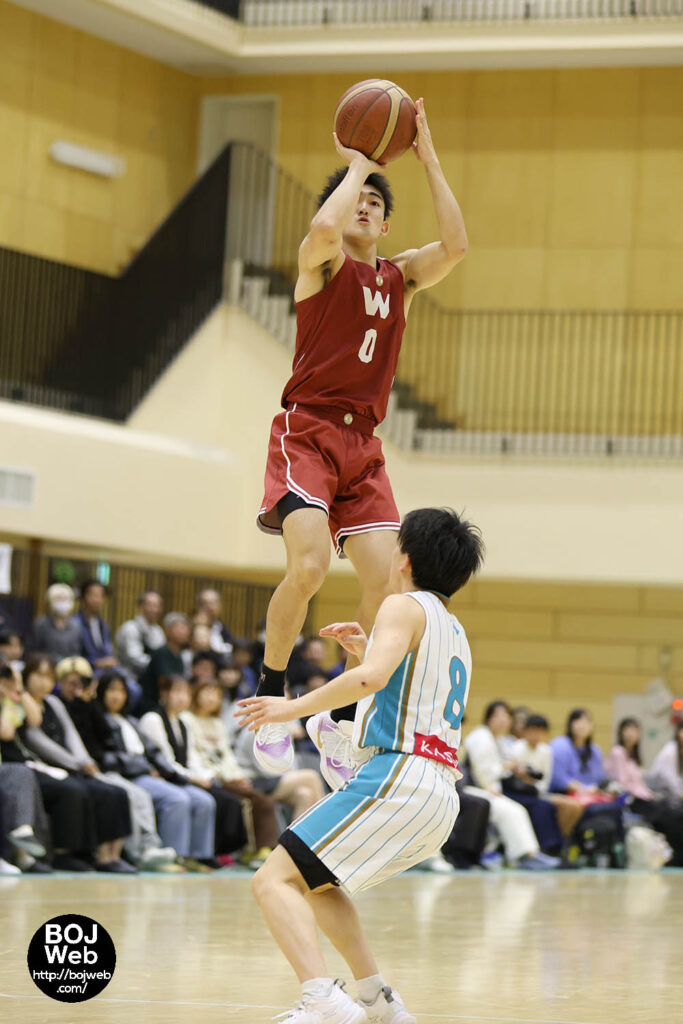 プレーするメンバーを絞っている早稲田大は3連戦でさすがに疲れが見え、ファウルも重なったが、苦しい場面を#18岩屋や#0下山、#6三浦(3年・F)が打破し、チームで17本沈めたスリーポイントで得点力を見せつけた。