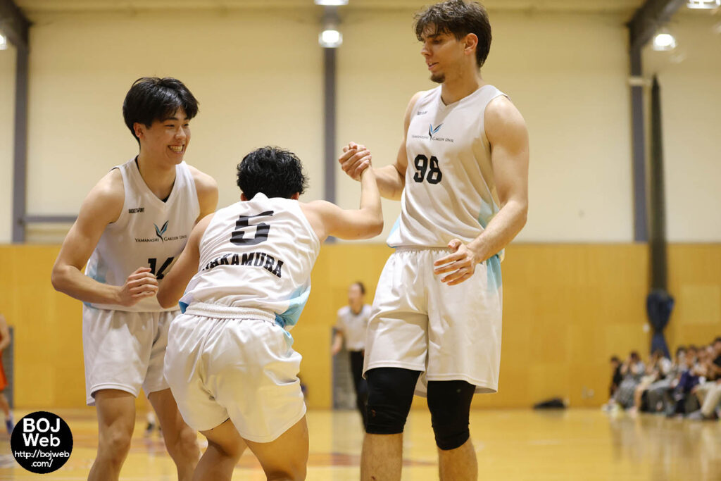 今季2部降格となっている山梨学院大。しかし2部リーグでは序盤の2敗以降は安定して勝ち進み、見事19勝3敗で2部優勝を決めて入れ替え戦に臨む。中心となるのは中村、齋藤、スヴェトリシックなど昨年も主力として出場していたメンバーに、期待の1年生も加わった布陣だ。その中で菅野もポイントゲッターの一人として活躍するが、先輩からのサポートも糧にしながらのびやかにプレーしているのが印象的だ。