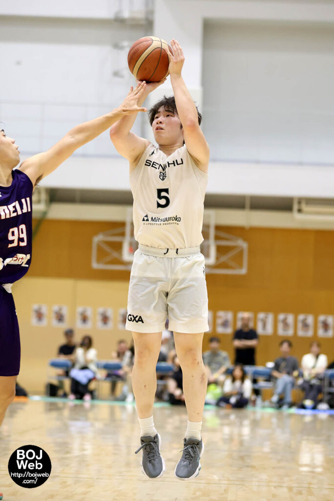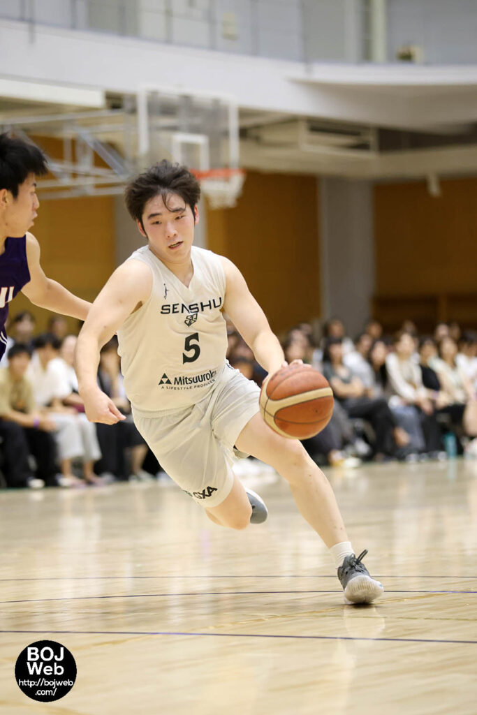 「自分は2年生の頃からずっとこうやってプレーしてきました。本来は松野(#31)のポジションなんですが、そうじゃないポジションや仕事でも頑張れるところでキャプテンを任されているとも思っています。自分がMVPじゃなくてもしっかり点を取るエースがいるし、4年生や下級生も頼もしいので、自分がやるべきことをやって、スコアに残らなくても全然大丈夫なので、やり抜いてチームが勝ってくれればいい。みんながプレーしやすいプレーを自分ができればと思います」