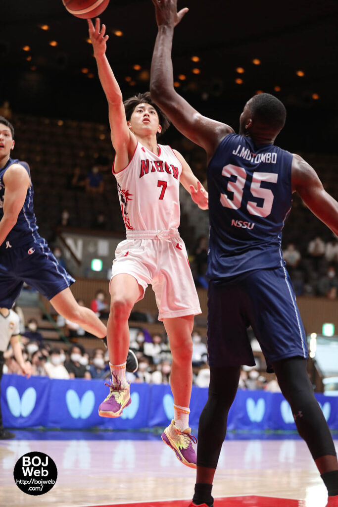 今季は日本大のエースとしてチームを牽引する。厳しいマークを受ける試合も多いが、それでもリーグ戦の特点ランキングは5位と昨年よりもスコアを伸ばし、ここぞというところでチームを支えてきた。