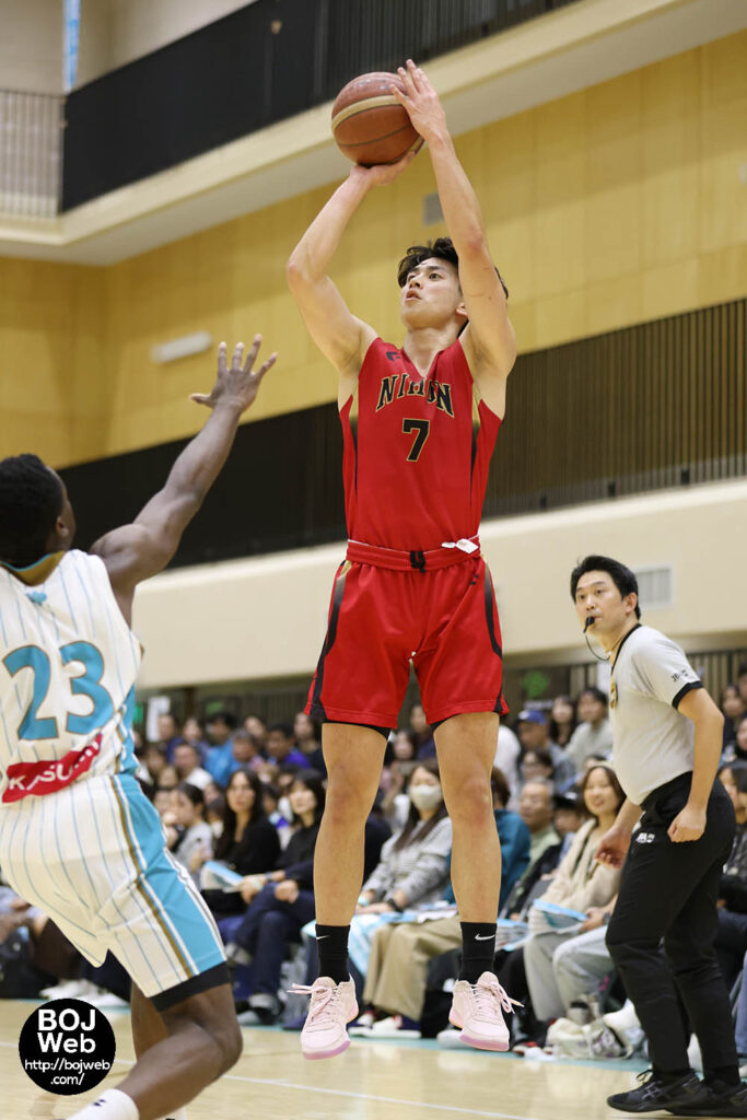 「誰が抜けたからとか、そんなに意識をしているわけではないんですが、今年も全員が点を取れる選手たちです。そこは去年と変わらない日大の特徴ですね。昨年はデイビッド(コンゴロー・現B3徳島)のところで点数を取れていた分を、今年はもっといろんな選手に分散させているという違いがあります。泉や奥浜、哲汰、みんなが責任感というか、自分たちがやらないといけないという意識になっているので、その点ではいい感じにまとまってきているなと思います」