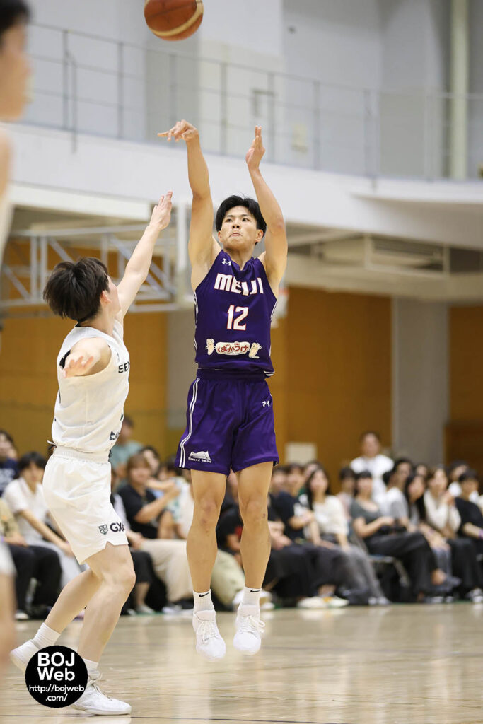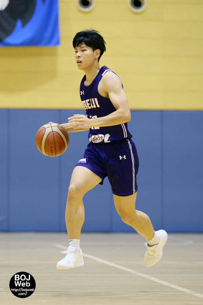今季のキャプテンを務め、ガードとしても要所で活躍を見せる。個の能力に優れた選手が多く、チーム全員で戦うのが今年の明治大のスタイル。意識的に強化してきたディフェンスの良さもあって、今年は春からスプリングトーナメントで3位、そして新人インカレでも3位に食い込んだ。