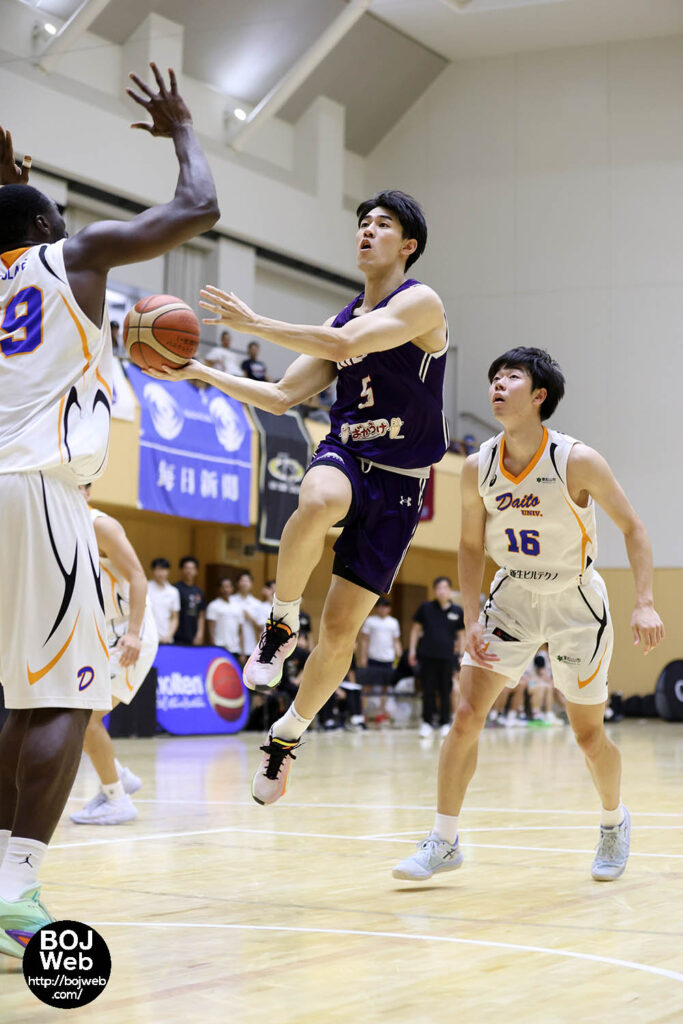 「大学全体でいうと、ディフェンス強度がすごく高くて、高校までだったら簡単にできていたことをなかなかさせてもらえない世界でした。そんな中で幅を広げてきたことです。明治でいうと1、 2年生の頃はどちらかというとロールプレーヤーみたいな感じでしたし、ハンドラーだけじゃないプレーもさせてもらってチームのためにやるっていう役割も経験することができました。そこから3年生4年生と上がっていく中で、ハンドラーもやって自分が点を取るっていう、そういった役割を今はさせてもらっています。本当にいろいろ学ぶことができたなと思っています」