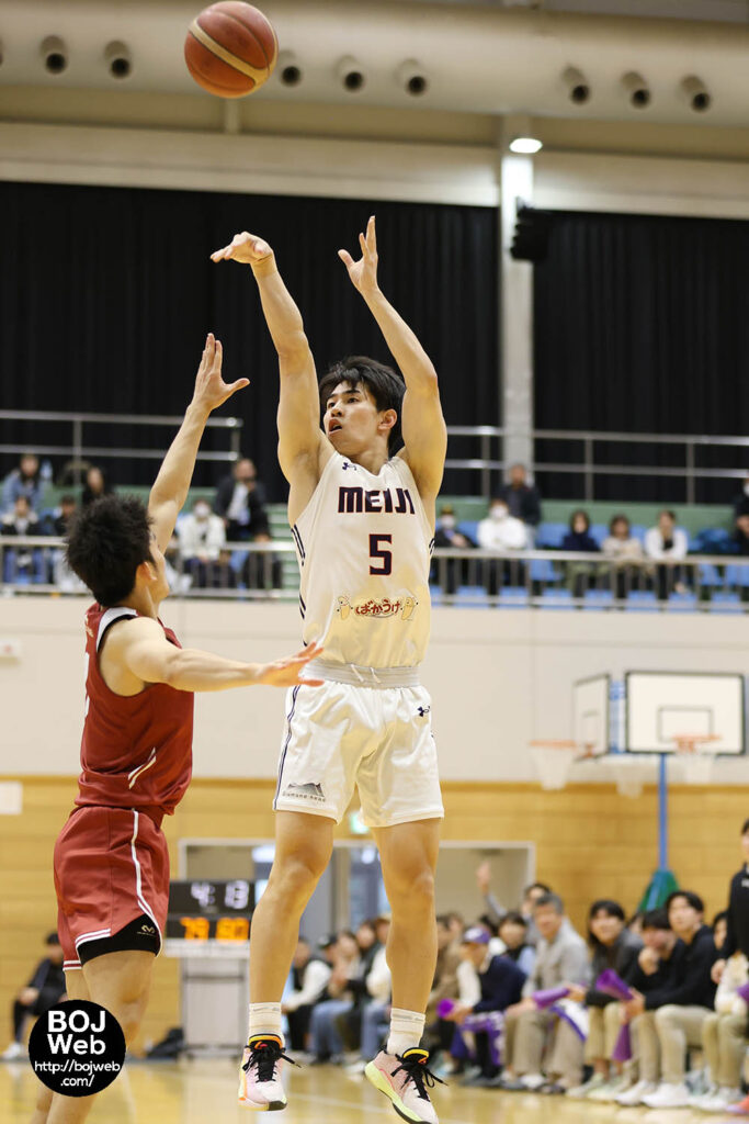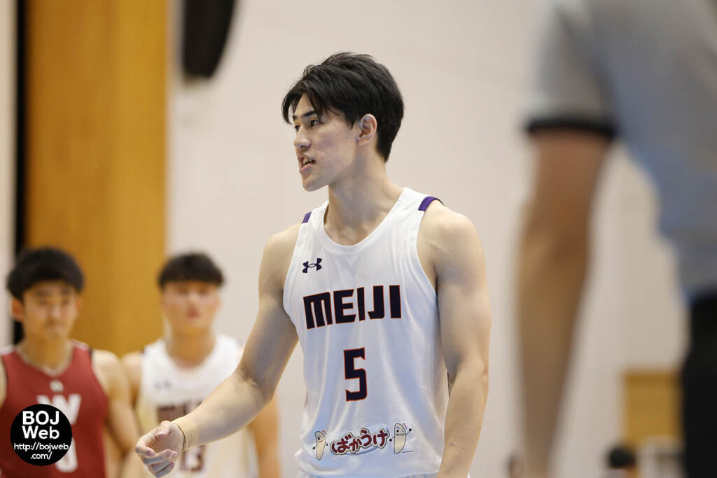 「大学のバスケっていうのは、ある程度のスタイルが決まっているというか、どのチームも似ているところはあって、その中でスペシャルな選手を軸にする感じだと思います。でも本当に早稲田はそういった意味でいうと逆に型がない。本当に誰でも軸になれるというのは、早稲田の本当の強さだと思います。自分たちも早稲田のようにファイブアウトのようなスタイルをやる選択肢もありました。でも去年から自分たちがやってきたことを続けていくことが大切だし、将来も含めていろんな方向性を相談しながら、明治は明治としてチームを作ってやってきたという感じですね」