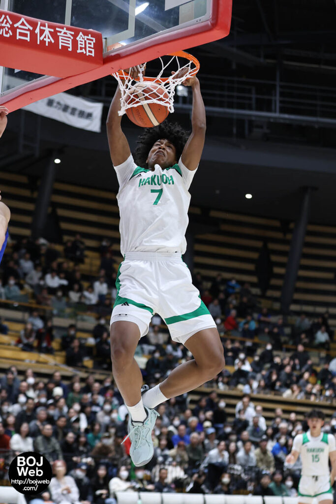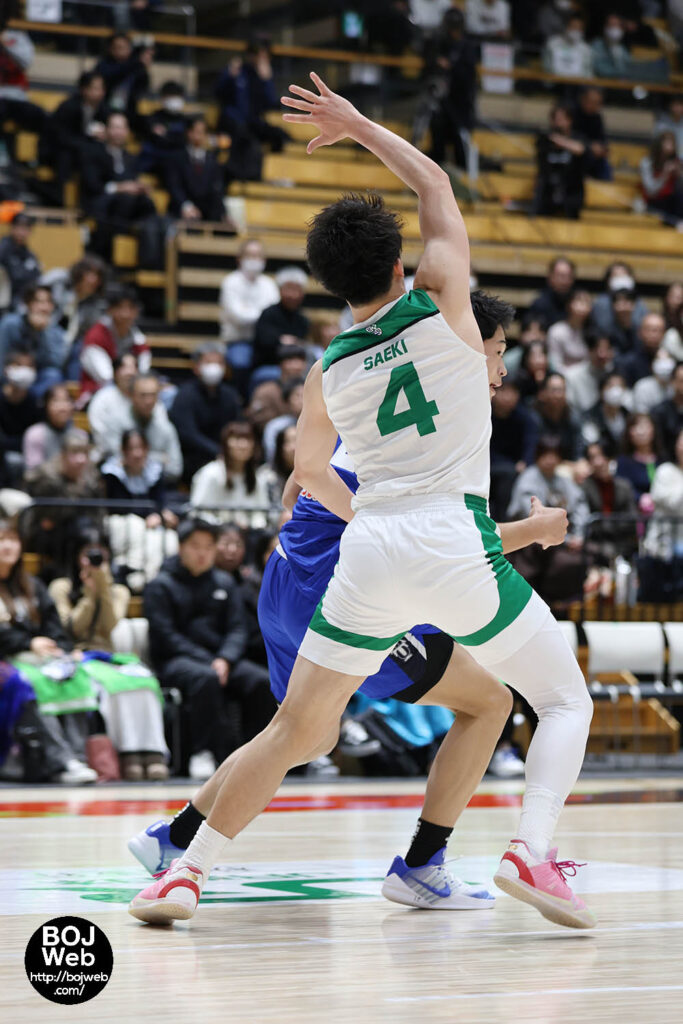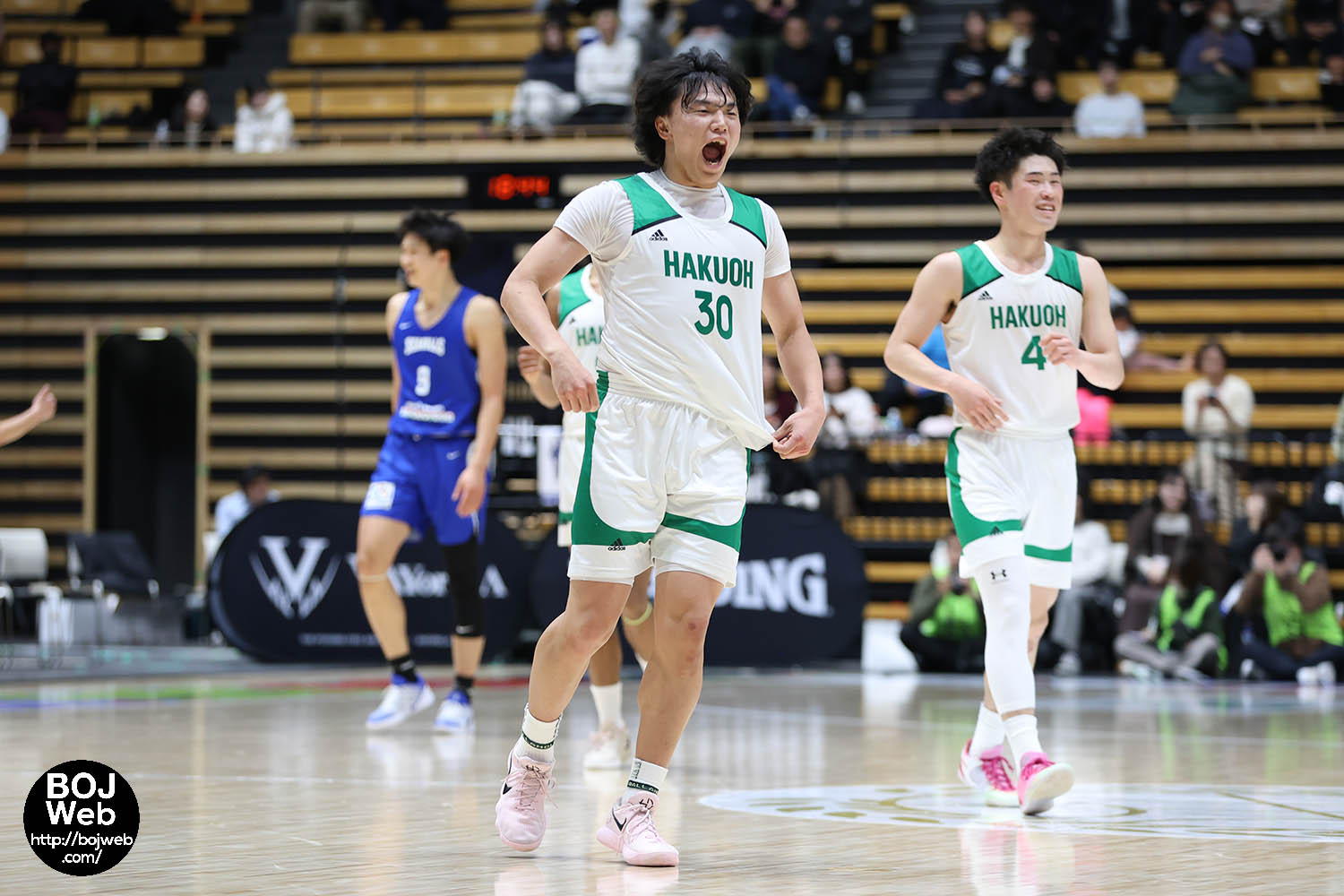 白鷗大は49-31と大量リードで前半を折り返すが、後半は東海大も追い上げる。#12十返(1年・SF・八王子学園八王子)が立て続けに得点して差を縮めていくが、白鷗大は#37南澤(2年・PG)のスリーポイントが決まるなど、ベンチメンバーがいいプレーで勢いを切らすことなく63-51。4Q、追いかける東海大は#9江川の3本目のスリーポイントで残り4分に5点差まで詰め寄った。しかしその後、白鷗大は#22内藤(3年・PG)がスリーポイントを返し、また東海大にベンチテクニカルもあって追いつくまでの流れは来ず、94-75で白鷗大が決勝進出を決めた。
