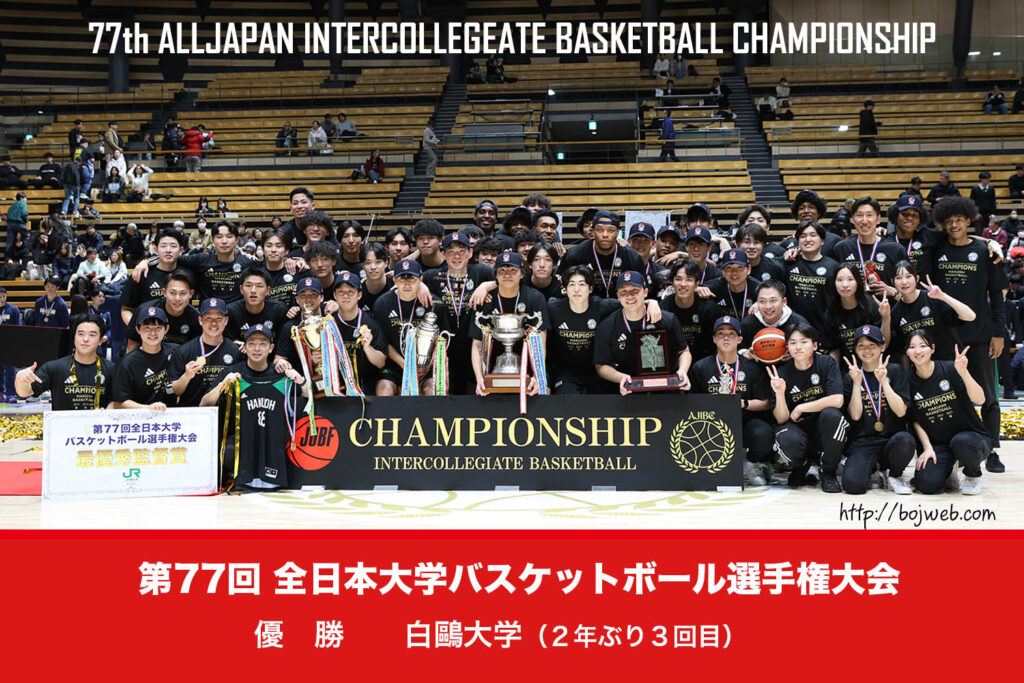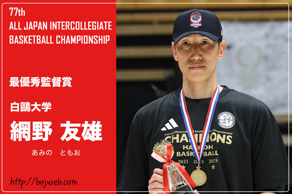 【2025インカレ】大会結果《男子》(2025.12.14) 2025インカレ 2025.12.15 【大会結果】 優勝 白鷗大学(2年ぶり3回目)準優勝 早稲田大学3位 日本経済大学4位 東海大学 【個人賞】 ※表彰はベスト4のチームから、個人勝スタッツの数値は準決勝・決勝の結果による。